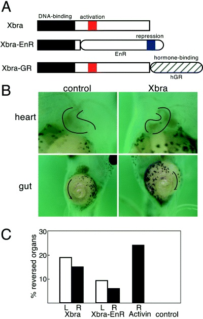 Fig. 1. Reversal of heart and gut looping in Xbra-injected