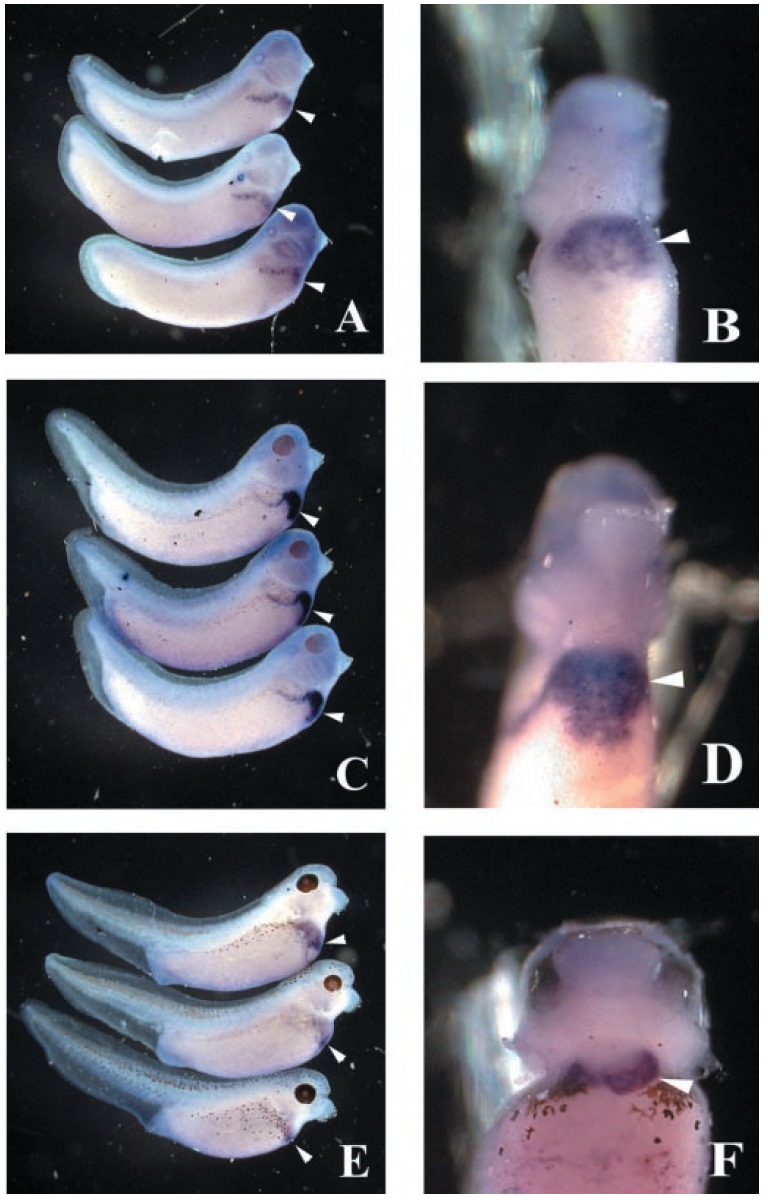 FIG. 3. The expression profiles of FOR in the developing Xenopus