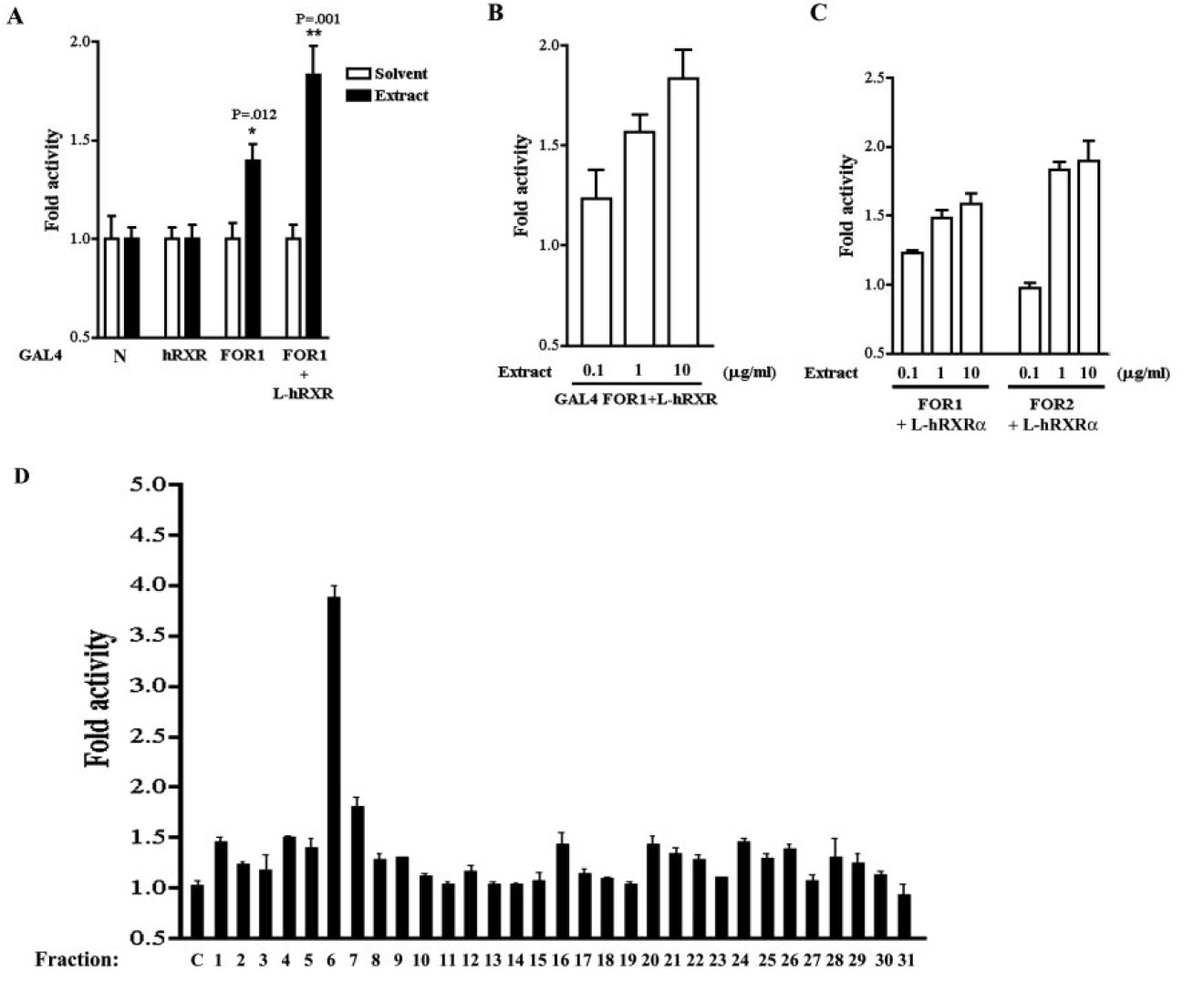 element (PLTP, C). D, following cotransfection of GAL4-FOR2 with GAS Luc, the cells were treated with indicated fractions (40 g/ml) eluted from