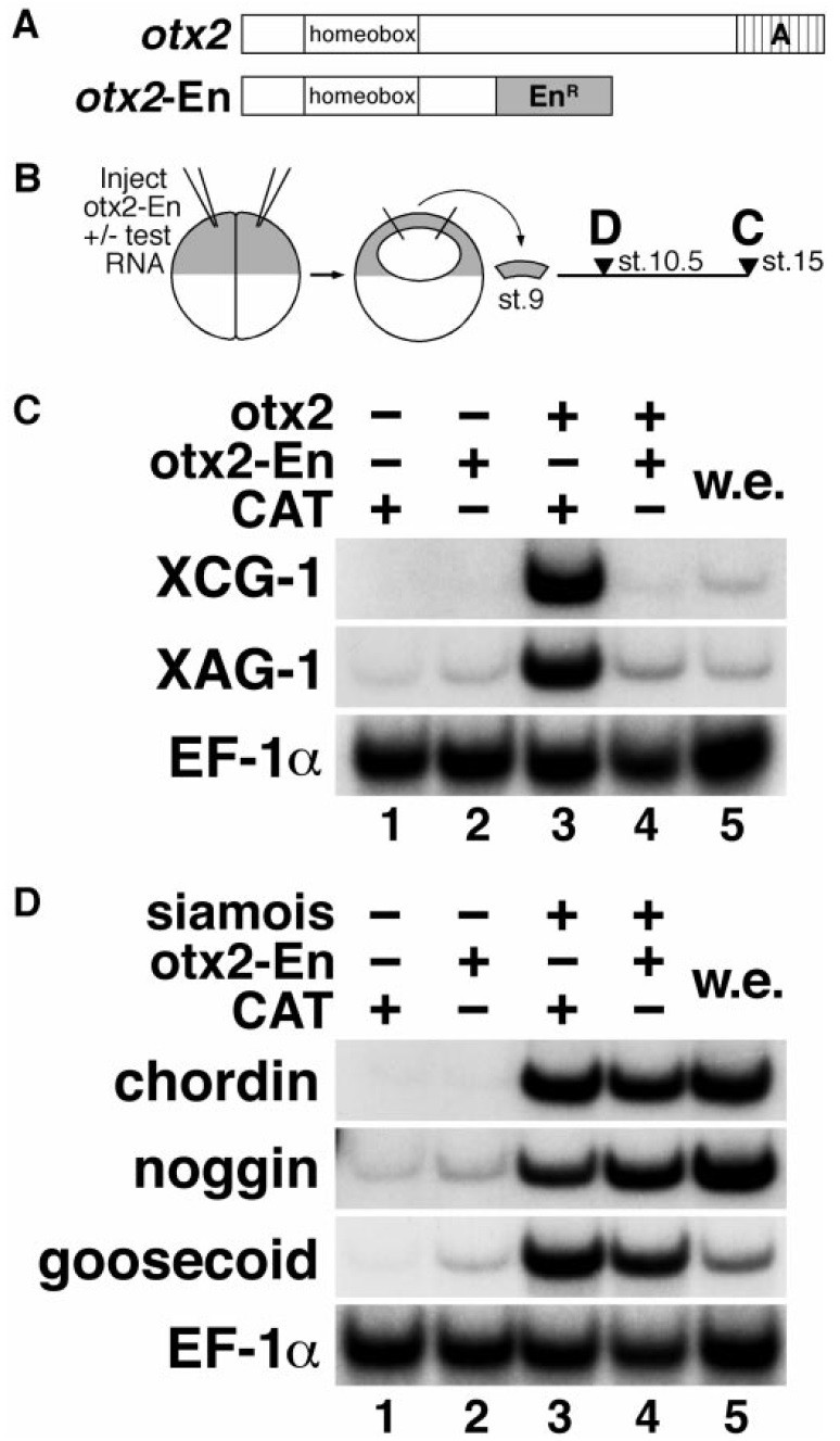 (C) Animal caps from embryos injected with 500 pg otx2-En, 50 pg