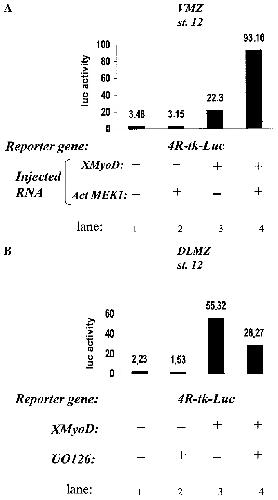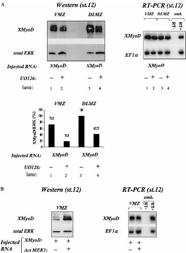 2 ng of in vitro transcribed XMyoD RNA or/and with 2.5 ng of in vitro transcribed constitutively active form of MEK1 (Act MEK1) RNA.