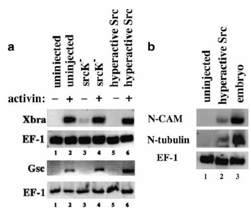 and Gsc or EF-1a. b Hyperactive Src induces neural markers in