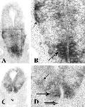 sections of the prosencephalon (A,B) and rhombencephalon (C,D) of