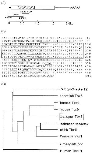 Fig. 1. (A) Structure of Tbx6 cDNA. The white box is a coding