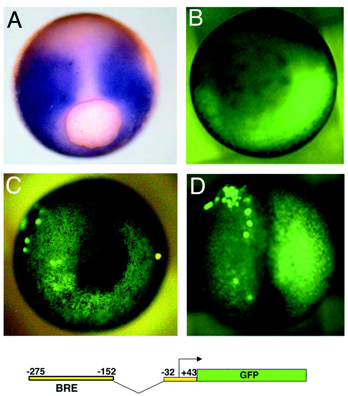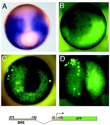 control of the BRE in transgenic Xenopus embryos at stage 10 (B), 11.5