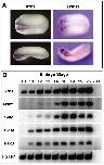 Fig. 2. Xfz3 and Xwnt1 are co-expressed in developing neural tissues. (A) Whole-mount in situ analysis of Xfz3 and Xwnt1 in neurula stage embryos (top, stage 18) and early tadpoles (bottom, stage 25). (B) Embryos were harvested at stages indicated and expression of dorsal neural markers was assessed by RT-PCR. Fgf receptor (FGFR1) was used as a loading control.