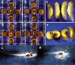 Fig. 6. Timelapse microscopy of dorsal lip movement. (A,C,E,G,I) mAb 4H2-injected control embryos. The blastopore closes normally and there is a progressive involution of superficial DMZ cells over the blastopore lip. (A) Bottle cell formation is normal (arrowhead), and cells marked in green in the DMZ at stage 10.5 (C) before involution over the lip. (E) At stage 11 cells marked in green have passed over the lip to contribute to the lining of the archenteron. A second population of cells marked in yellow also passes through the blastopore as it closes (G). (I) Cross sections through the blastopore lip of stage 12 mAb 4H2-injected embryos reveal involuted superficial cells lining the archenteron (white arrowhead). A FN matrix (black arrowhead) separates the BCR deep cells from the involuted mesoderm. (B,D,F,H,J) Embryos injected with mAb 1F7. In these embryos there is no migration of DMZ cells over the lip of the blastopore during the same time period. (B) Blastopore lip formation is normal (arrowhead). (D,F,H) Cells marked in red remain essentially in the same position in DMZ, and the blastopore remains open through stage 12. Before blastopore closure, the DMZ buckles (arrows H,J). In mAb 1F7-injected embryos, there is no FN matrix evident and the involuted mesoderm (im), as well as the non-involuted tissue (nim) in the DMZ, appears to be disorganized. No archenteron has developed and the short invagination (arrowhead) is the result of DMZ buckling. QuickTime movies of the embryos used to obtain still images for Fig. 6A-H may be viewed on the DeSimone laboratory website (http://faculty.virginia.edu/desimonelab). |