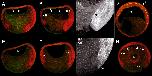 Fig. 12. Timecourse of XDsh-GFP membrane localization. DMZ explants were cultured on GST-9.11 fusion protein substrates. (A) 10 minutes post-plating, XDsh-GFP remained cytoplasmic. (B) After 30 minutes, XDsh-GFP was beginning to accumulate at the cell membrane. (C) 60 minutes after being placed on the substrate, XDsh-GFP was localized to the cell membrane. (D) DMZ explants cultured on GST-9.11 fusion protein pre-incubated with mAb 4B12. XDsh-GFP remained cytoplasmic. (E) When animal caps (CAP) were cultured on GST-9.11 fusion protein, XDsh-GFP was localized to the cell membrane after 60 minutes. (F) The translocation of XDsh-GFP to the cell membrane was blocked after pre-incubation of the substrate with mAb 4B12. |
