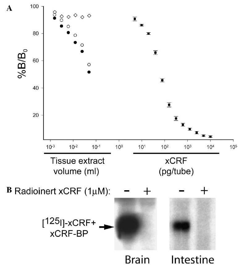 the relative displacement of [125I]-Xenopus laevis CRF (xCRF) by increasing