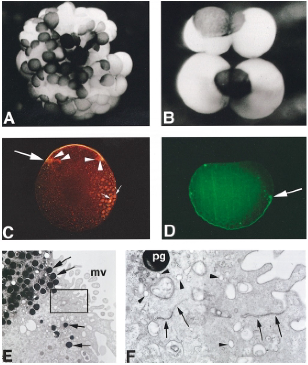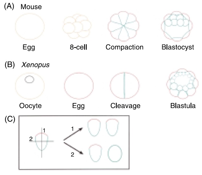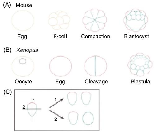 Fig. 1. Cleavage and membrane polarization in (A) mouse