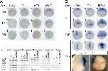 Supplemental Fig. 1. Synergistic effect on Xatv knockdown by coinjecting XatvA- and XatvB-specific MOs, with dramatic effects on Xnr target gene expression beginning from early gastrula onwards. (A) Embryos were injected with 60 ng of XatvMO1 or XatvMO2, or 30 ng each of (XatvMO1 + XatvMO2) at the 1-cell stage, and assayed at St. 9.5 and St. 10.5 by whole-mount in situ hybridization. Some embryos were bisected sagittally through the center of the dorsal lip before processing. MO-based depletion of Xatv did not change the expression level/domain of Xatv or Xbra at stage 9.5 (Aa–d, i–l). Expression of both genes was markedly upregulated and expanded in Xatv MO-injected embryos at stage 10.5 (Ae–h, m–t). Note that coinjecting XatvMO1 and XatvMO2 caused a more increased and expanded expression of markers than either single MO injection, suggesting a stronger knockdown of Xatv function. (a–p) Dorsal views, except (m) (vegetal view). (q–t) Sagittally bisected embryos. Green arrowheads, dorsal lip; red and yellow arrowheads show the distal and proximal boundaries of Xatv expression from the dorsal lip, respectively; white brackets, breadth of Xbra expression domain. [Quantitative analysis of alterations in MO-injected embryos shown: b, n = 10/10; c, n = 6/9; d, n = 6/8; f, n = 9/10; g, n = 8/10; h, n = 4/4; j, n = 8/8; k, n = 5/7; l, n = 3/4; n, n = 7/9; o, n = 8/10; p, n = 6/6; r, n = 5/5; s, n = 7/7; t, n = 6/6.] (B) Comparison of knockdown effect by several combinations of XatvMOs. Embryos were injected with 60 ng of (b) leftyB-MO (Branford and Yost, 2002), 30 ng of each of the pair of (c) XatvMO1+ leftyB-MO, (d) XatvMO2+ leftyB-MO, or (e) XatvMO1 + XatvMO2, or 20 ng of each of the three (f) XatvMO1 + XatvMO2 + leftyB-MO at the 1-cell stage, and assayed at St. 10.5 by whole-mount in situ hybridization. Coinjection of MOs that target the A and B copy of Xatv induce more expanded Xatv expression than injecting leftyB-MO alone (b; 55%, n = 20). MO combinations that inhibit both XatvA and XatvB function such as XatvMO1+ leftyB-MO (c; 73.7%, n = 20), XatvMO1 + XatvMO2 (e; 85%, n = 20), and XatvMO1 + XatvMO2 + leftyB-MO (f; 72.2%, n = 18) give rise to expanded Xatv expression at higher frequency than XatvMO2+ leftyB-MO that mainly targets XatvB function (d; 55%, n = 20). |