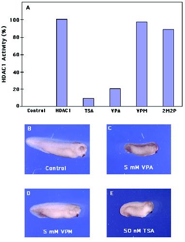 FIG. 4. VPA inhibits HDAC activity. A, human HDAC1 activity