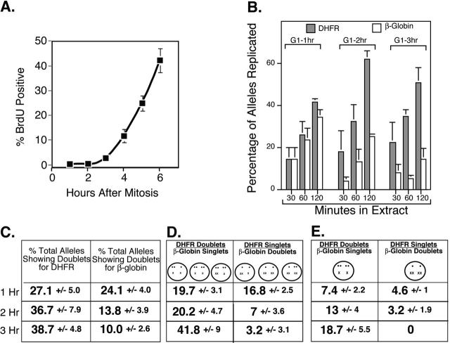 The replication timing program of the Chinese hamster beta-globin locus is established coincident with its repositioning near peripheral heterochromatin in early G1 phase.
