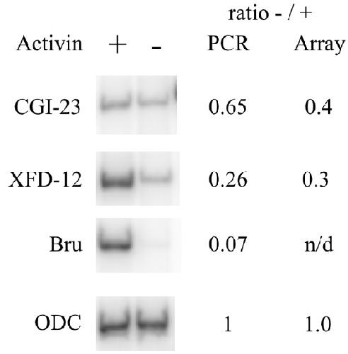 FIG. 4. PCR analysis of genes identified by the array. Activin