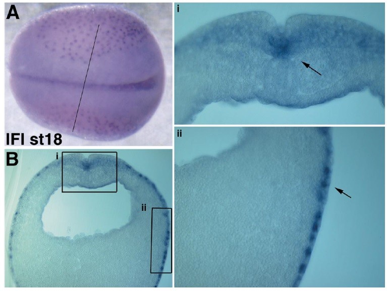 at gastrula stage 10 (section through D, ii) and at neurula stage