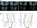 Figure 3. Turnover of nucleoporins within NPCs and ALPCs measured by FRAP. (A) FRAP of NRK cells expressing POM121-EGFP3 transiently. Boxed regions were photobleached and fluorescence recovery of ALPCs and NPCs was followed immediately after the bleach and then every 28 s in confocal sections. Arrowheads indicate the bleached AL. Note difference in recovery of AL and NPCs. Time, mm:ss. For quantitation see online supplemental Fig. S1 A. (B) FRAP of NRK cells expressing EGFP2-Nup153 transiently. Recovery was monitored immediately after the bleach and then every 5 s. Time and scale as in A. (C) FLIP of PtK2 cells expressing EGFP2-Nup153 transiently. Outlined region was photobleached repetitively 30 times every 30 s. Before and after each bleach the depletion of fluorescence was monitored in a confocal section. Time and scale as in A. (D) Plots of recovery in the bleached half and equilibration between bleached and nonbleached half of a Nup153 FRAP similar to B. Average mean intensities of the bleached region (black, left Y-axis) and standard deviation (n = 4). Data was normalized for total loss of fluorescence. Change of total fluorescence from the nonbleached (green) and bleached half (blue, both right Y-axis) measured for the experiment shown in B. (E) Plots of EGFP2-Nup153 depletion from the nucleus and cytoplasm for the FLIP in C. Average nuclear (black), cytoplasmic (green, both left Y-axis), and ratio of NPC/cytoplasmic fluorescence (blue, right Y-axis) is shown. Data was normalized to total loss of fluorescence. Note that nuclear fluorescence remains constant after initial loss of overlapping cytoplasmic signal, whereas cytoplasmic fluorescence is reduced to background levels. Bars, 5 μm. Online supplemental material (Fig. S1) is available at http://www.jcb.org/cgi/content/full/200101089/DC1.