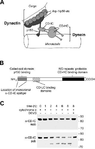 Apoptotic cleavage of cytoplasmic dynein intermediate chain and p150(Glued) stops dynein-dependent membrane motility.