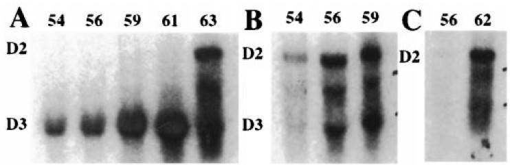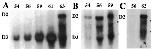 total RNA. This blot was hybridized only with the D2 probe. The numbers on