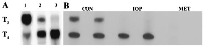 2), and hind limb with iopanoic acid (lane 3). (B) Stage-59 tadpoles were