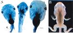 3 nM T4 (Left). They were stained for cartilage with Alcian blue. (B) Tadpole