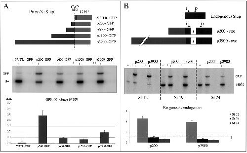 endogenous promoter, a modified X. laevis Slug cDNA was inserted downstream from the p200 and p3900 promoters (upper panel). With a single