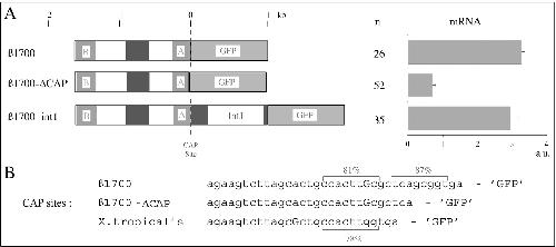 FIG. 5. The second CAP site is necessary for X. laevis Slug promoter function, whereas the first intron is not. A, the second CAP site