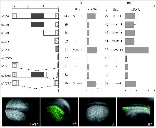 was deleted from the slug promoter ( 1700- CAP construct) (left panel). This construct was injected into embryos, and GFP expression was