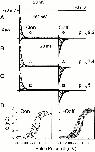 Figure 10. Gating currents of the R371H channel. Using the cut-open oocyte voltage clamp with a H+ sensitive electrode, R371H channel gating currents and pHi were simultaneously measured in three pH gradients: pHo/pHi 8.3/6.6 (A), pHo/pHi 6.3/6.2 (B), and pHo/pHi 5.2/5.8 (C). The gradients were established with HB recording solutions; the external solution was varied while the internal pH 5 solution was left unchanged. All gating currents were recorded from the same membrane area. The gating currents in each pHo/pHi group (shown superimposed in A–C) were elicited by the pulse protocol series shown at the top. The left panel of A–C is an enlargement of the ON-gating currents shown fully in the right panel. Linear leak current was subtracted from each current trace off-line as described in materials and methods (Data Analysis of I-V Curves). (D) Voltage dependence of steady-state proton current amplitudes (proton current I-V curves) measured in three pH gradients: pHo/pHi 8.3/6.6 (♦), pHo/pHi 6.3/6.2 (▾), and pHo/pHi 5.2/5.8 (▪). IH was determined by taking the isochronal, steady-state amplitudes of the ON-gating currents shown in A–C. The linear leak component has already been subtracted out as described in materials and methods. The Qoff-V curve associated with each I-V curve was used to generate the voltage dependence of the gating capacitance, Cg. Each Cg-V curve (lines) was scaled to its associated I-V curve. (Experiment D11210b) |
