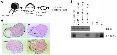 but retained in the explants injected with XFD RNA. (C) Histological observation of RNA-injected explants. A tBR-injected VMZ explant contained welldifferentiated
