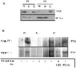 YY1 is a cytoplasmic protein in oocytes and embryos. An immunohistochemical analysis of YY1 and PCNA in oocytes and embryos was done. Oocyte and embryo stages are indicated at the left of each series of panels. In the stage 9 embryo panels, the dorsal part of the embryo is shown. In the neurula panels, the dorsolateral part of the embyro is shown. Thebottom panels show YY1 localization in hepatocyte nuclei of adult frog rat liver.