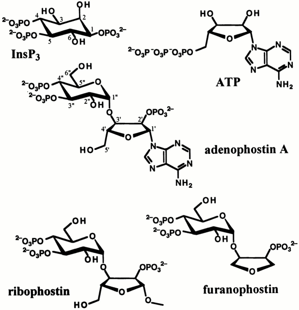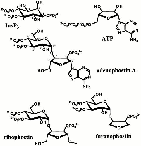 Acyclophostin: a ribose-modified analog of adenophostin A with high affinity for inositol 1,4,5-trisphosphate receptors and pH-dependent efficacy.