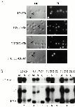 Figure 6. (A) Intranuclear localization of U2-C/D motif chimeras. 1 fmol of fluorescein-labeled wild-type U2-C/D motif chimera (U2+CD), Sm-mutant U2-C/D motif chimera (U2smâ-CD), 5â² 1/2U2-C/D motif chimera (5â² 1/2U2-CD), or 5â² 1/2U2-C/DÎC motif chimera (5â² 1/2U2+CDÎC) was injected into Xenopus oocyte nuclei, and nuclear spreads were prepared 5 h later. DIC and fluorescence (FL) panels are shown for each field. The arrowheads in the DIC panels indicate Cajal bodies. (B) Nucleocytoplasmic distribution of the U2-C/D motif chimeras. The distribution of the injected RNAs within the nuclear and cytoplasmic oocyte compartments was determined as described in the legend to Fig. 4 B. Bar, 10 μm. |