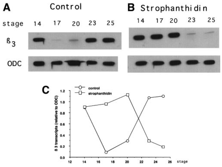 stage 17. Note that b3 transcript levels fall when the Na pump is