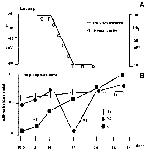 Ordinate, b3 transcript levels relative to ODC; abscissa, stage of development. Note that b3 transcripts fall at stage 17, but are recovering