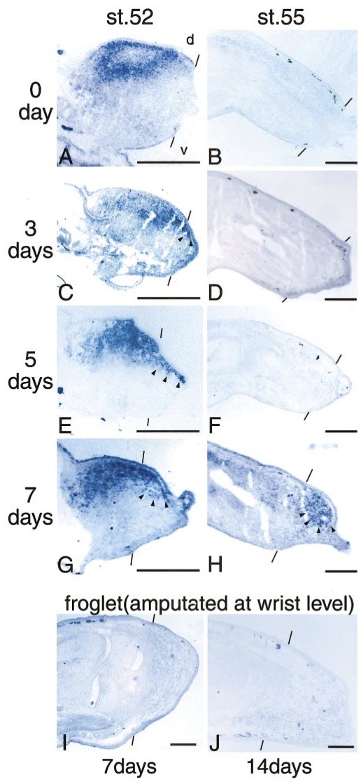 An epidermal signal regulates Lmx-1 expression and dorsal-ventral pattern during Xenopus limb regeneration.