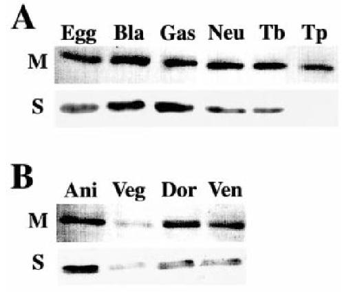 with anti-Xoom antibodies. (E) Protein fractions M and S