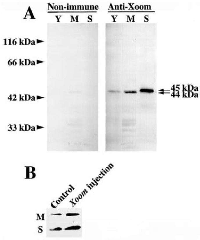 Fig. 2. Detection of Xoom protein from Xenopus embryo. (A)