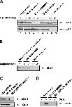 Figure 1. Immunodepletion of Mre11 and Ku70 proteins from X. laevis egg extracts. (A) Untreated egg cytosol and mock-, Mre11-, or Ku70-depleted extracts were analyzed by Western blotting with either anti-XMre11 serum or antibodies against Ku70. (B) Untreated membrane-free egg cytosol and extracts treated with preimmune (mock depleted) or anti-XMre11 serum (Mre11 depleted) were analyzed by Western blotting with anti-XMre11 serum. (C) Mre11 and Ku70 double-depleted egg cytosol (Mre11 and Ku70 depleted) were analyzed with either anti-XMre11 serum or antibodies against Ku70. (D) Untreated egg cytosol, Mre11-, or Mre11 and Ku70 double-depleted extracts were incubated with streptavidin beads coated with biotinylated, linear double-strand DNA, and the fraction of proteins bound to DNA was analyzed by Western blotting with anti-XMre11 serum.