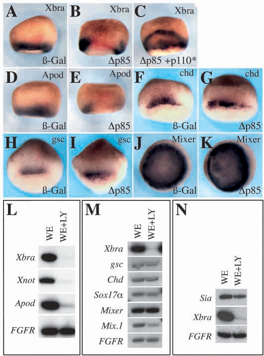 (0.5 ng/blastomere; B,E,G,I,K), or with ã p85 (0.5 ng/blastomere)