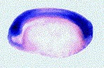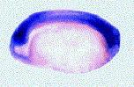 sim2 (single-minded homolog 2) gene expression in Xenopus laevis embryo, assayed via in situ hybridization, NF stage 6, lateral view, animal pole up.