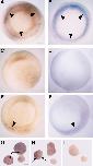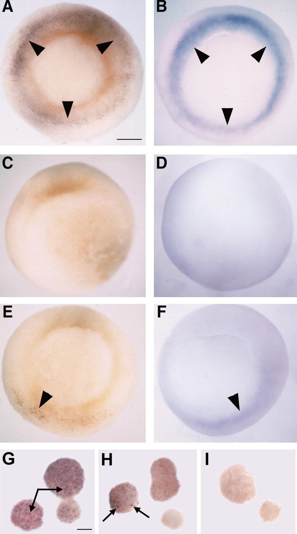 denotes condensed staining and arrow denotes diffuse staining). HoxB9 expression was not seen in untreated animal caps as seen in D