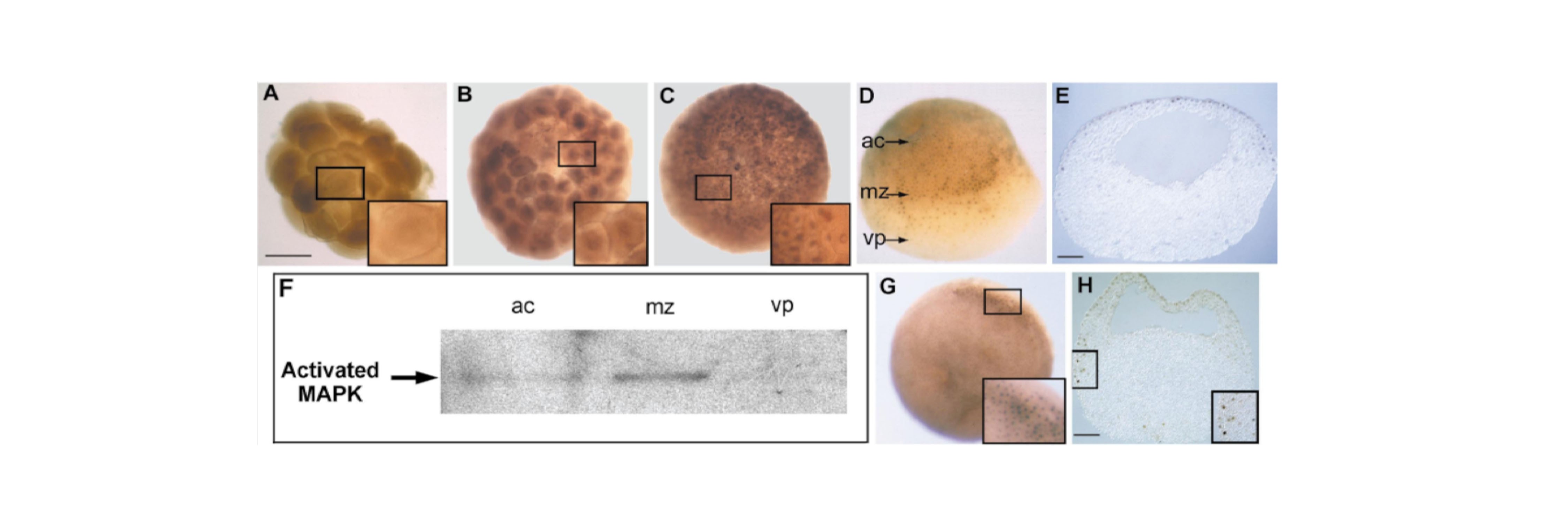Expression of activated MAP kinase in Xenopus laevis embryos: evaluating the roles of FGF and other signaling pathways in early induction and patterning.