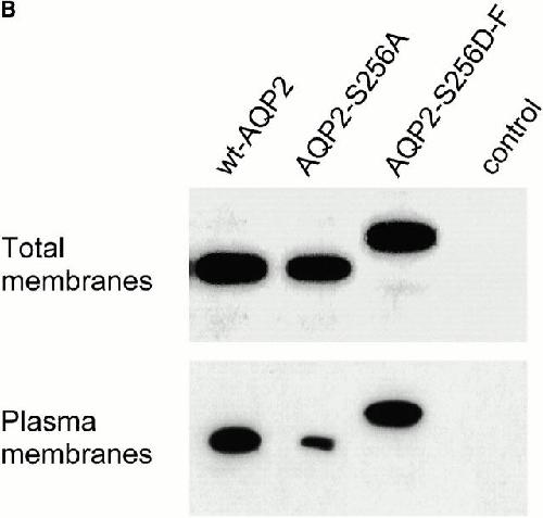 Phosphorylation of serine 256 is required for cAMP-dependent regulatory exocytosis of the aquaporin-2 water channel.