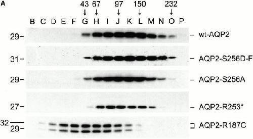 The subcellular localization of an aquaporin-2 tetramer depends on the stoichiometry of phosphorylated and nonphosphorylated monomers.