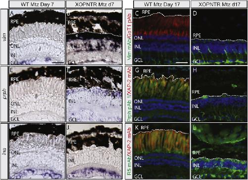 Müller glia reactivity follows retinal injury despite the absence of the glial fibrillary acidic protein gene in Xenopus., Dev Biol 2017 |
