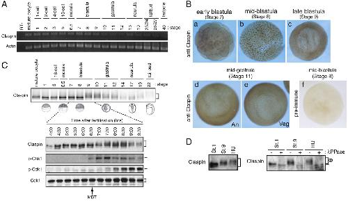 Phosphorylation of Claspin is triggered by the nucleocytoplasmic ratio at the Xenopus laevis midblastula transition., Dev Biol 2011 |