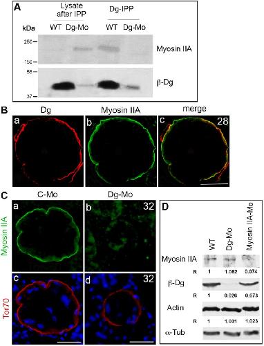 An adhesome comprising laminin, dystroglycan and myosin IIA is required during notochord development in Xenopus laevis., Development 2014 |