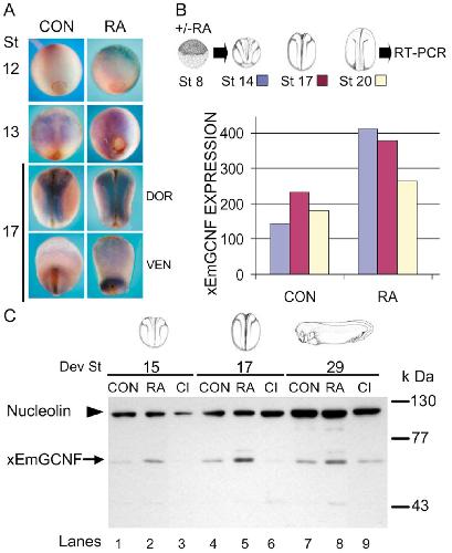 The germ cell nuclear factor is required for retinoic acid signaling during Xenopus development., Mech Dev 2003 |