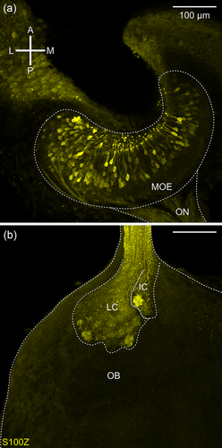 S100Z is expressed in a lateral subpopulation of olfactory receptor neurons in the main olfactory system of Xenopus laevis., Dev Neurobiol 2024 |