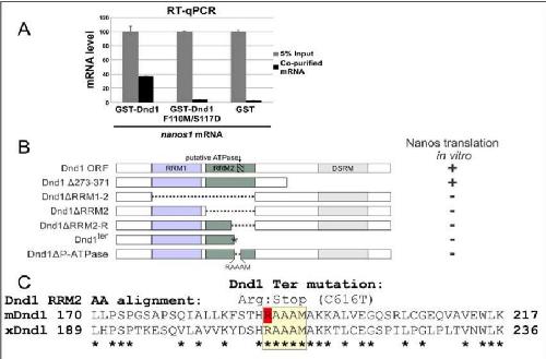 Combined functions of two RRMs in Dead-end1 mimic helicase activity to promote nanos1 translation in the germline., Mol Reprod Dev 2018 |